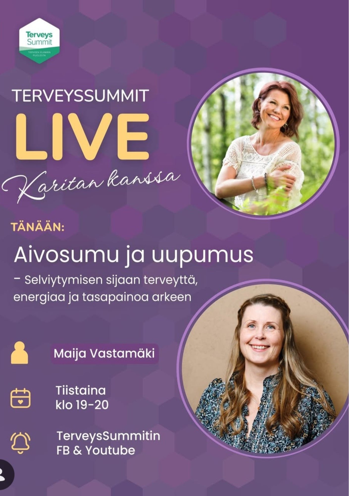 Olen yksi puhujista vuoden 2025 TerveysSummit -tapahtumassa sekä TerveysSummit Podcast -vieraana. TerveysSummit on Suomen suurin terveystapahtuma netissä.